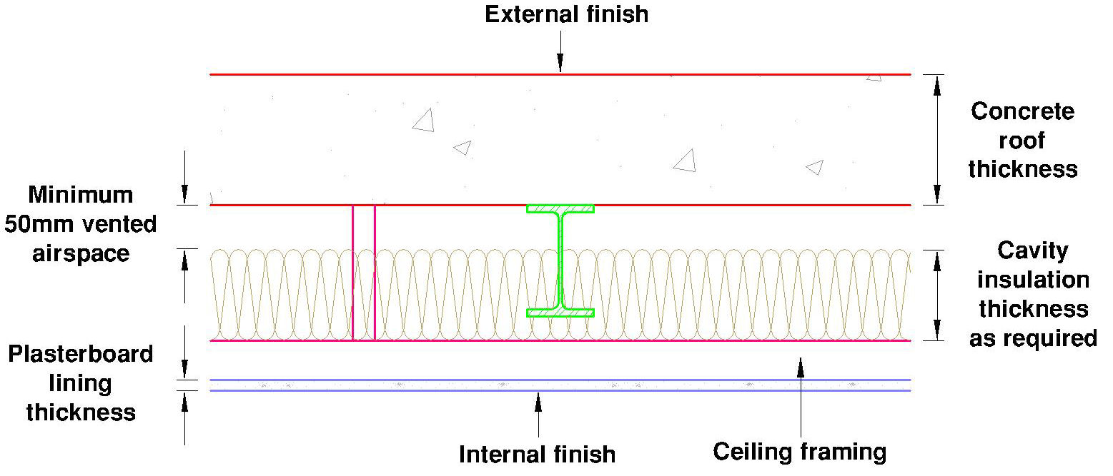 The solution above will allow for a 50mm cavity (vented) within ceiling void/plenum.